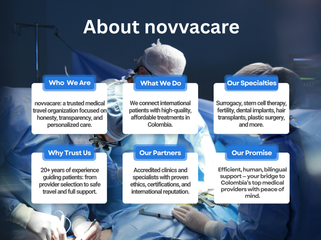 novvacare was created to make high-quality healthcare more accessible, personal, and ethical for international patients. Our vision is to become the most trusted bridge between global patients and Colombia’s top medical providers.